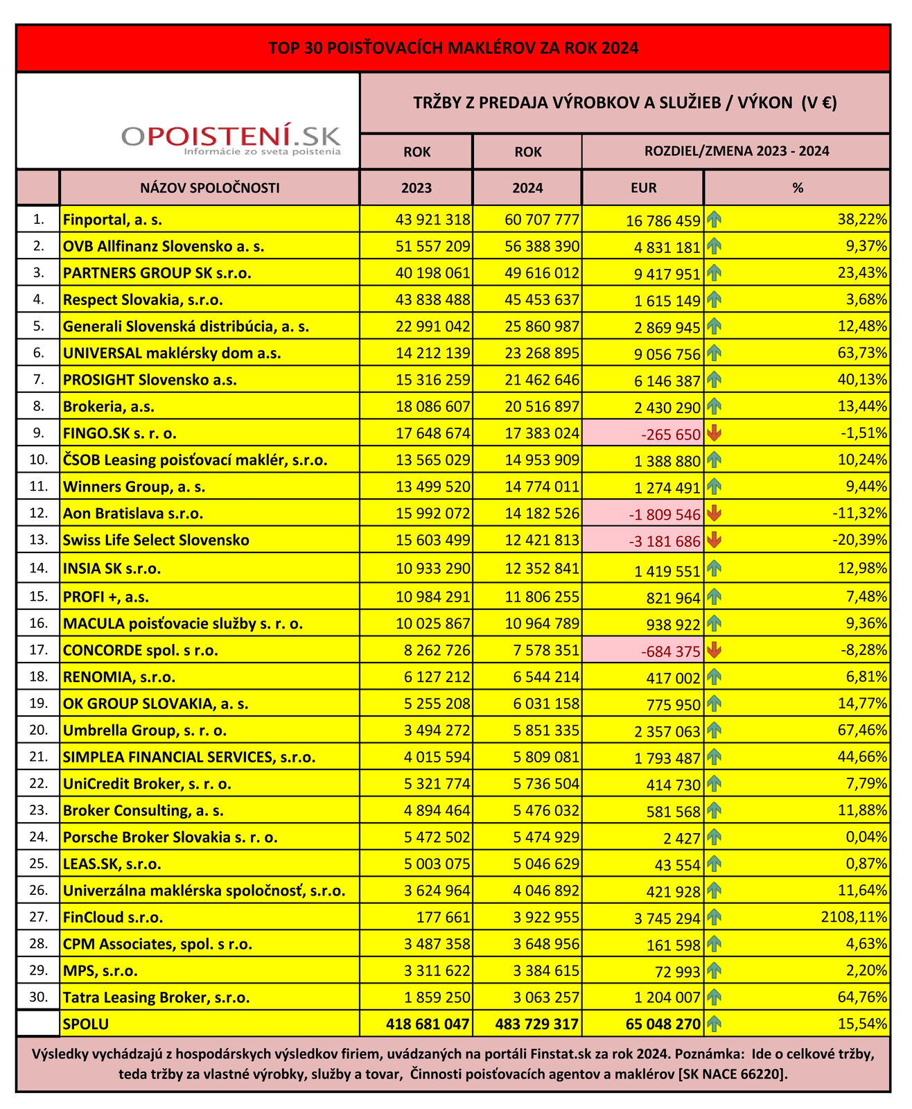Rebríček reflektuje aktuálnu výkonnosť trhu a poskytuje odborný pohľad na dynamiku sektora. Tržby jednotlivých spoločností boli spracované na základe účtovných výkazov za rok 2024, pričom poradie odzrkadľuje ich obchodnú silu v oblasti sprostredkovania poistenia.